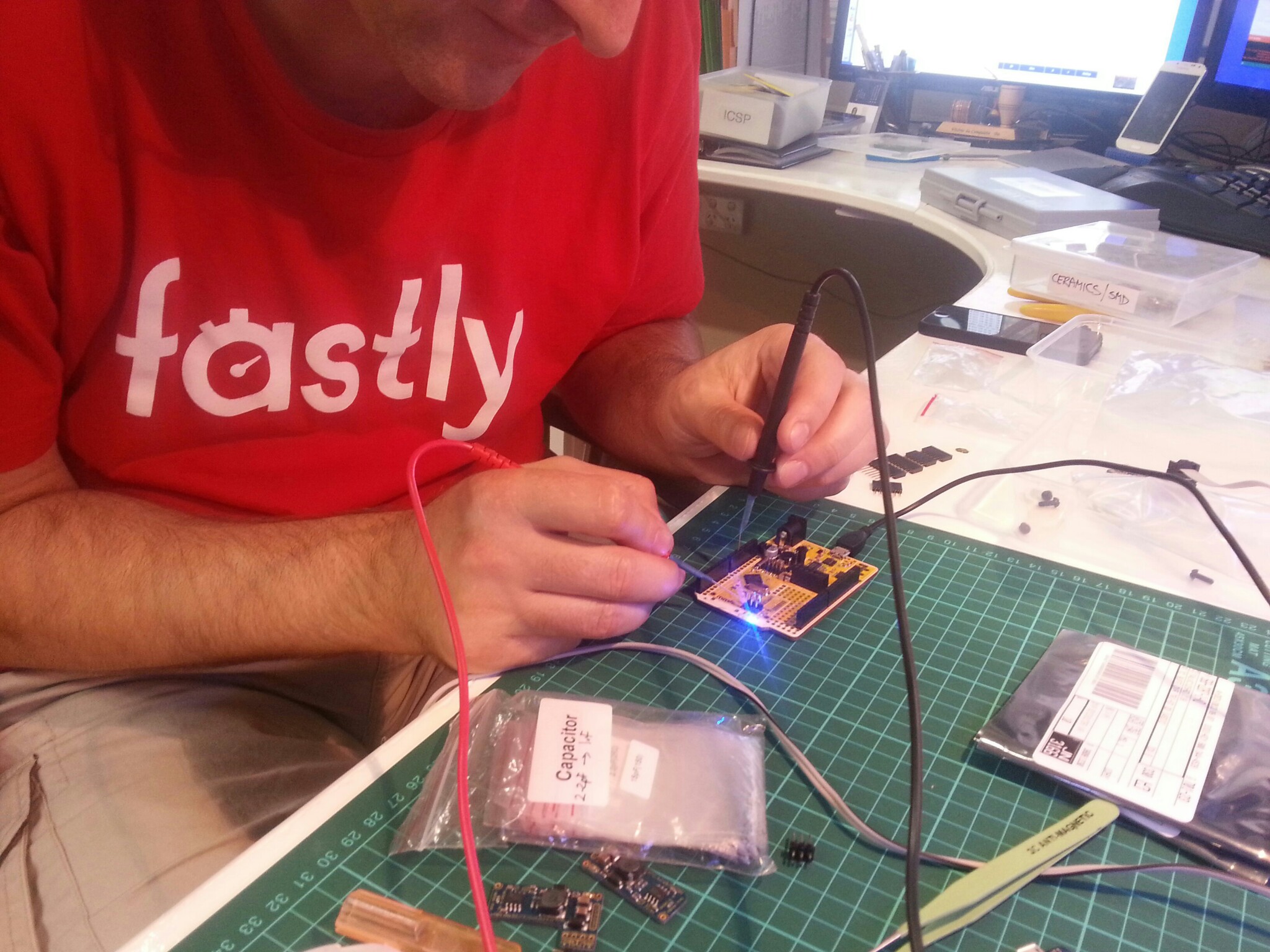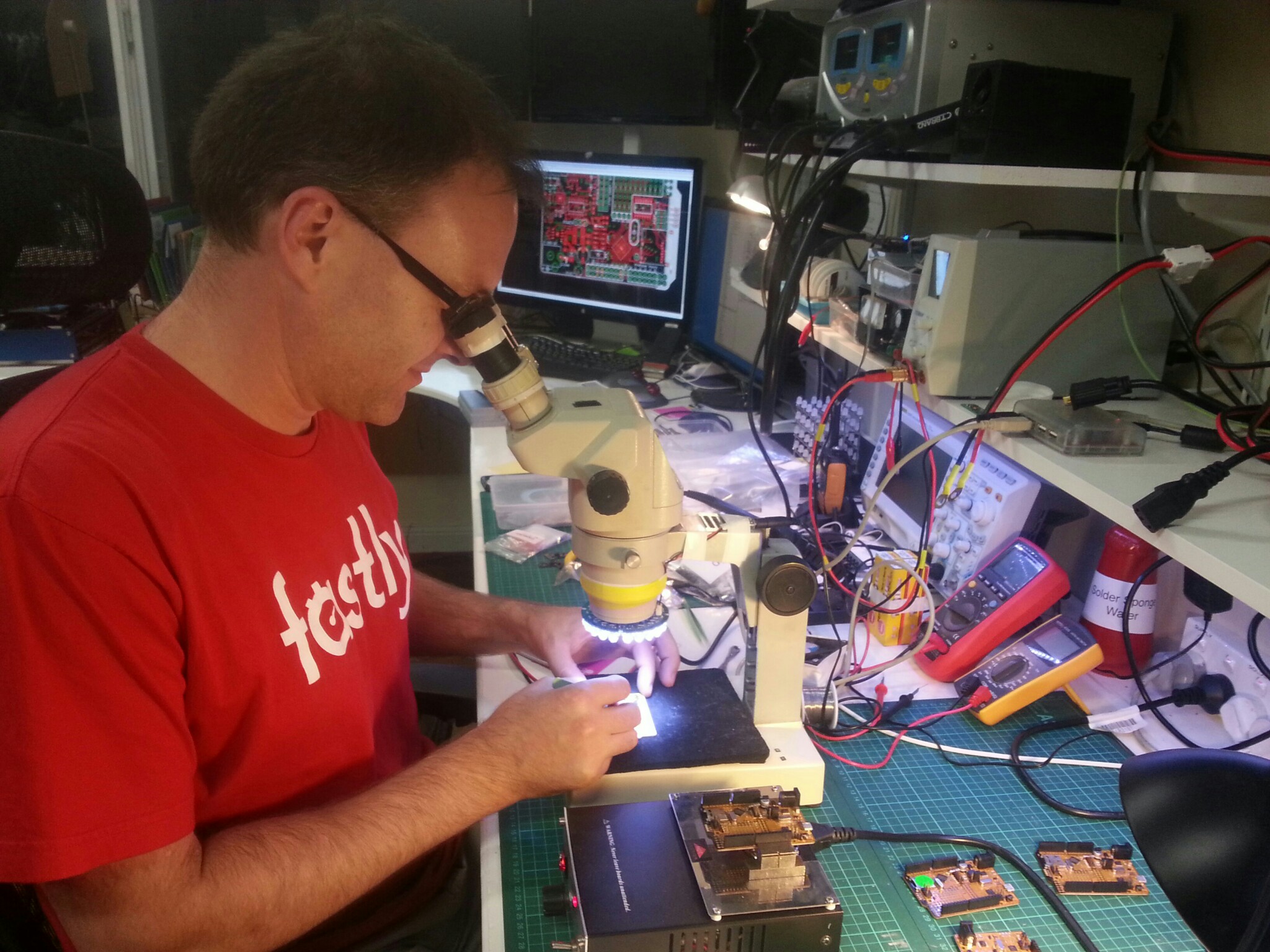 Goldilocks Analogue - 3Here Jon is assembling the first prototype, using several faulty Goldilocks v1.1 devices as donor boards. Only two components didn’t fit correctly, and we didn’t have a uSD card cage so that was left off.