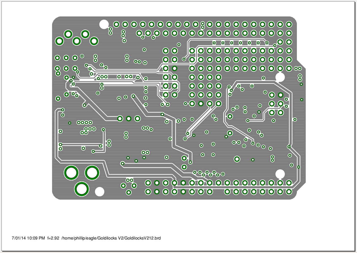 It takes many hours to layout even a small board the size of an Arduino Uno. Luckily, I had a completed and fully functioning example to use as a platform, thanks to Jon’s prior work on Goldilocks V1.