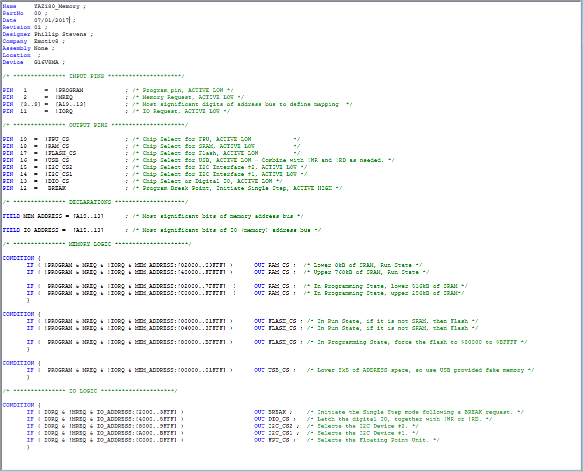yaz180-memory Published January 6, 2017 at 1165 × 945 in Yet Another Z180 Project (YAZ180) ← Previous Next → CUPL Memory Decoding