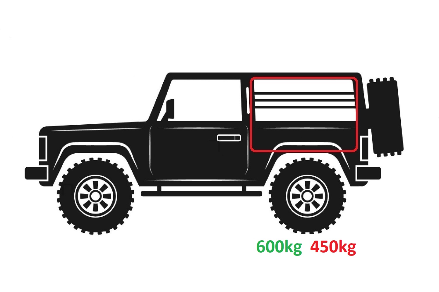 In my opinion only way to carry 600kg on a Rubicon is to distribute the weight onto both axles by using a Roof Rack.