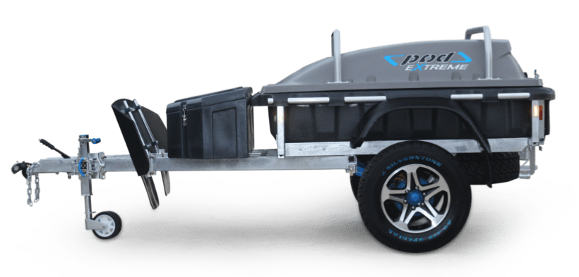 With an appropriate off-road independent suspension, hitch, and trailer brakes, a pod trailer can follow behind a vehicle on all but the most difficult 4WD tracks. And where necessary the secure lockable pod can be left behind at a camp site or trail head.