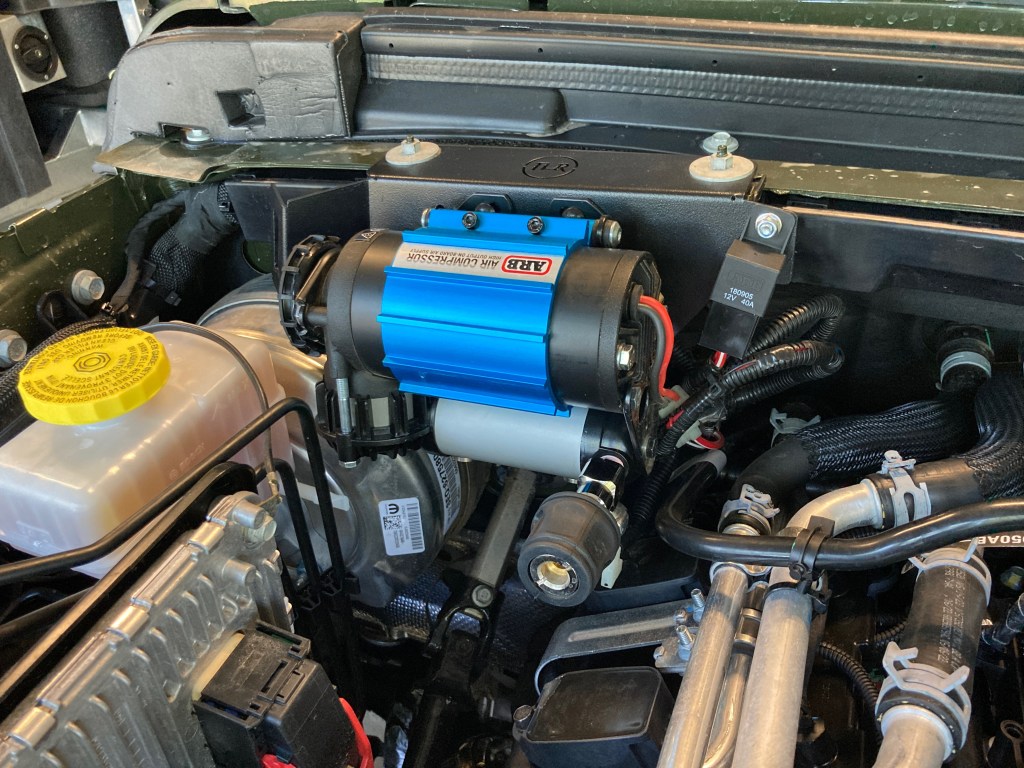 An ARB air compressor is fitted in the engine bay with a RHD specific mount from TLR.