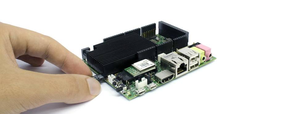 Now, plug the SSD caddy into the UDOO, and put the uSD in its slot.